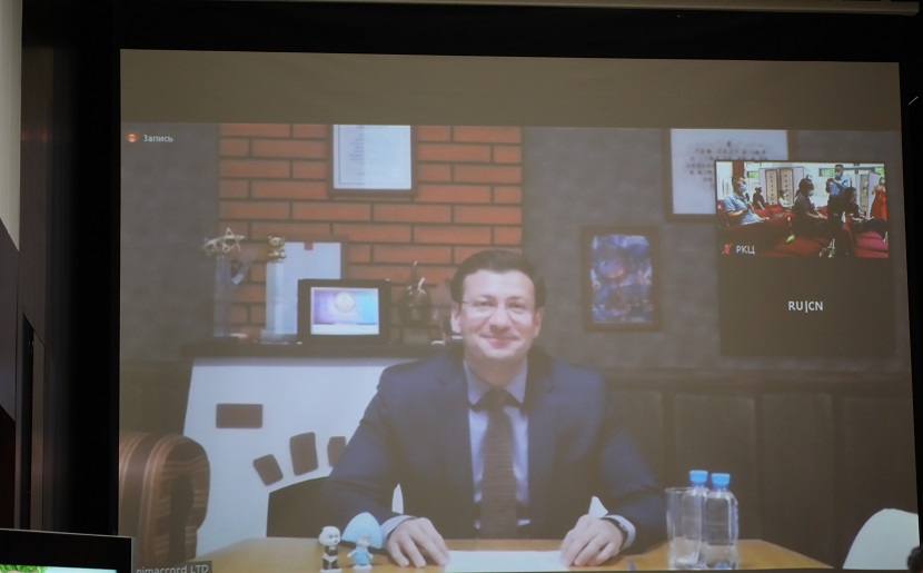 Генеральный директор компании ?Маша и Медведь? Владимир Валиев через видеосвязь представил третий сезон мультфильма китайской аудитории. Фото: Ли Янь