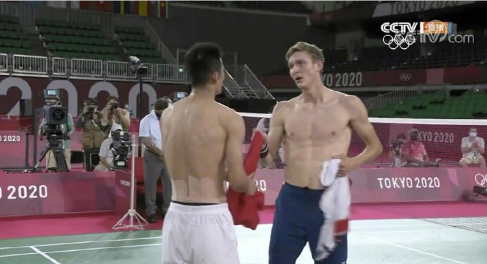Датский спортсмен Виктор Аксельсен в мужском одиночном разряде по бадминтону завоевал золотую медаль, а китайский спортсмен Чэнь Лун - серебряную. После матча соперники обменялись футболками и поздравили друг друга.