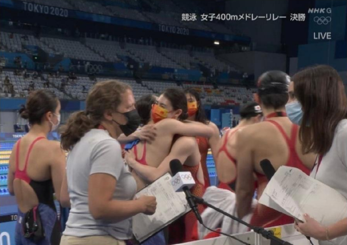 После завершения соревнований по плаванию китайская пловчиха Чжан Юйфэй и ее товарищи по команде обняли японскую спортсменку Рикако Икее. Они были соперниками на Азиатских играх, проходивших в Джакарте в 2018 году. В 2019 году было подтверждено, что Рикако Икее страдает лейкемией. Поборов болезнь, она вернулась в плавательный бассейн.
