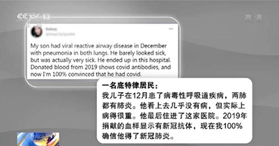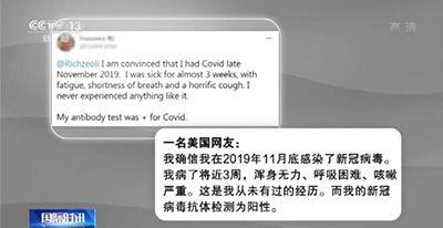Согласно данным Национальных институтов здравоохранения США от 15 июня 2021 года, в результате тестирования более 24 тыс. образцов крови, которые были собраны из разных мест США, было обнаружено, что в некоторых образцах были найдены антитела к коронавирусу. Согласно Национальным институтам здравоохранения, это означает, что еще в декабре 2019 года новый тип коронавируса уже начал распространяться в США.