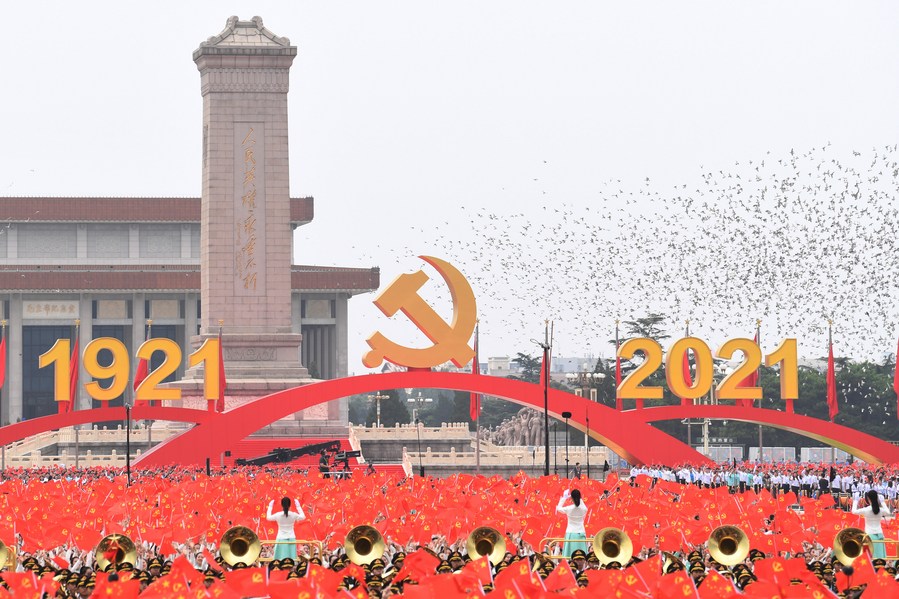 1 июля 2021 года, торжественное собрание по случаю столетия КПК на площади Тяньаньмэнь в Пекине. /Фото: Синьхуа/