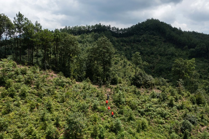 20 июля 2021 года, волонтеры патрулируют лесной массив в пров. Чжэцзян на востоке Китая. Данная лесная зона площадью 22 га была открыта в 2017 году в целях содействия сокращению выбросов углекислого газа и достижения углеродной нейтральности. /Фото: Синьхуа/