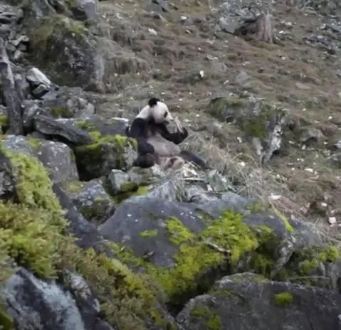 30 ноября, ?Жэньминь жибао? онлайн -- 27 ноября сотрудникам государственного природного заповедника Фопин в провинции Шэньси удалось запечатлеть на камеру большую панду, которая обгладывала кость такина обыкновенного.
