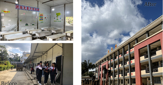 To make sure that students could study in decent and intact classrooms in the new semester, the local education and sports bureau set up a tight timetable and the construction company vowed to complete the project before August 30, a day before the new school year kicked off.