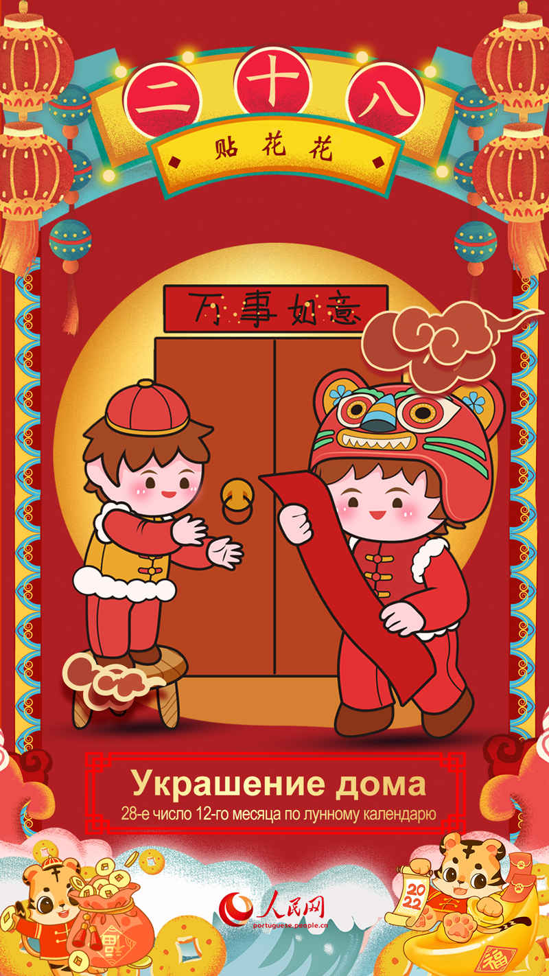 С этого дня, китайцы начинают украшать входные двери в дом и внутренние помещения. Бумажные узоры, парные полосы с новогодними пожеланиями, новогодние картины, изображения богов-хранителей входа ?привлекают? положительную энергию.