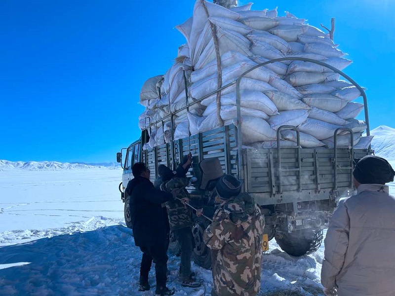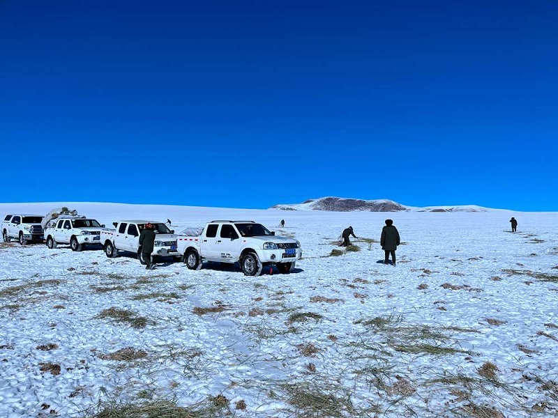 С октября прошлого года температура в районе пастбища Цянтан резко упала, и пастбища покрылись толстым покровом снега. Чтобы животные не замерзли и не умерли от голода, Жэньцзэн Лобу закупил корм в других местах и доставил его сюда.