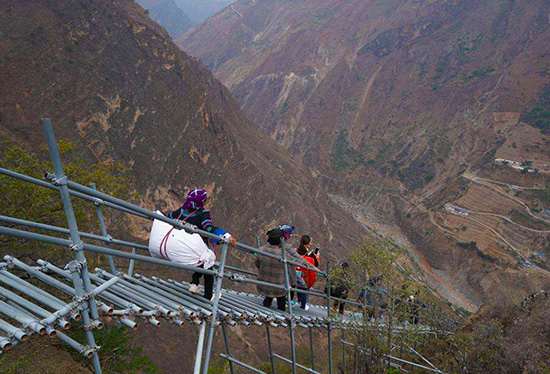"Деревня на обрыве" (ранее деревня Атулер) расположена в горах примерно в 60 км к востоку от уезда Чжаоцзюэ /Ляншань-Ийский автономный округ/ провинции Сычуань. Дорога от подножия горы к вершине обрывистая и опасная. В 2015 году СМИ сообщили,что жители деревни поднимаются и спускаются с горы по лестнице из легкого ротанга под углом около 80 градусов. Особенно это касается детей, вынужденных каждый день ходить в школу по небезопасной лестнице. Так деревня получила новое название – "деревня на обрыве".