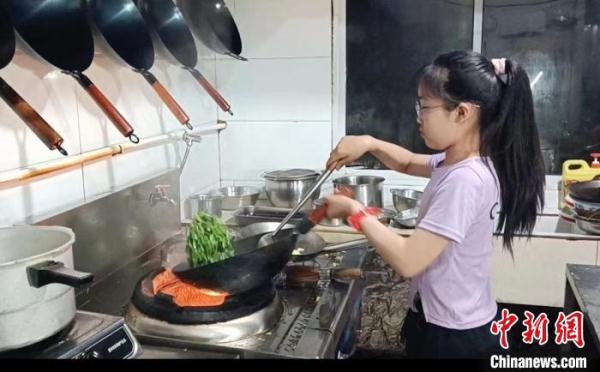 16 мая, ?Жэньминь жибао? онлайн -- Сунь Цзяжуй, 10-летняя девочка из Уси впровинции Цзянсу, Юго-Восточный Китай/, держа в руке большую железную вок-сковороду, с легкостью крутила ее на 360 градусов, уверенно контролируя уровень воды и одновременно с этим делая несколько оборотов кухонной лопаткой над своей головой. Именно за счет столь сложного кулинарного приема она обрела популярность на одной из площадок коротких видеороликов.