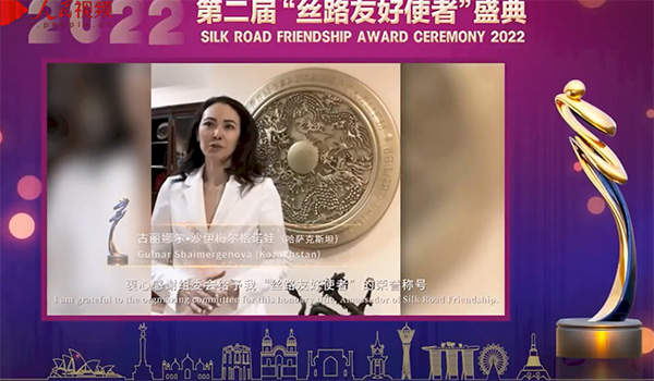 2 июня, ?Жэньминь жибао? онлайн -- 31 мая в режиме онлайн посредством видеосвязи состоялась вторая церемония награждения “Послы доброй воли Шелкового пути”, которая была совместно организована Китайским центром международного культурного обмена и редакцией периодического издания ?Global People? под эгидой газеты ?Жэньминь жибао?. Награду получила Гульнар Шаймергенова из Казахстана.