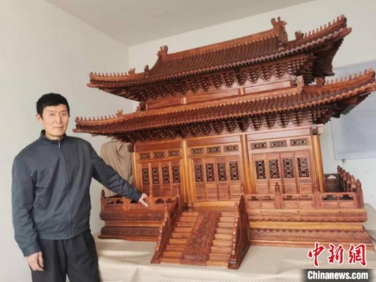 На создание деревянной модели плотник потратил 11 лет, так как много времени ушло на тщательное изучение документов, материалов и древних архитектурных деталей. Об этом сообщил сайт "Хуаньцюван".