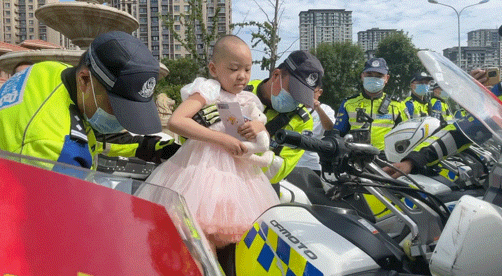 24 августа, ?Жэньминь жибао? онлайн -- 20 августа дорожная полиция города Цзинань провинции Шаньдун направила 25 полицейских мотоциклов для выполнения специальной миссии: она помогла 7-летней девочке Ниннин, больной раком, осуществить ее мечту ?мотоциклистки?.