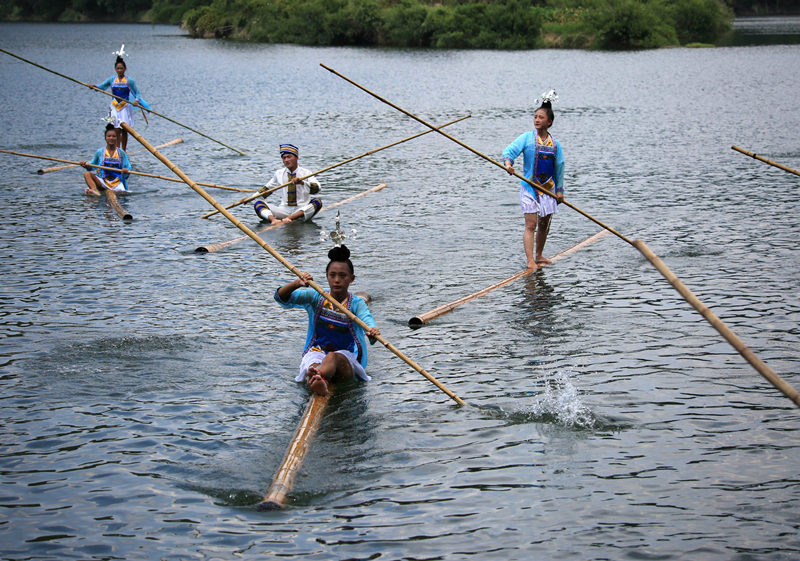 26 августа, ?Жэньминь жибао? онлайн -- 25 августа в уезде Жунцзян в Цяньдуннань-Мяо-Дунском автономном округе провинции Гуйчжоу прошли 10-е Национальные игры этнических меньшинств Китая. Команда ?Дучжупяо? (в переводе с китайского языка ?дрифтинг с одним бамбуком?) из уезда Жунцзян представила бамбуковый дрифтинг, продемонстрировав очарование нематериального культурного наследия провинции Гуйчжоу.
