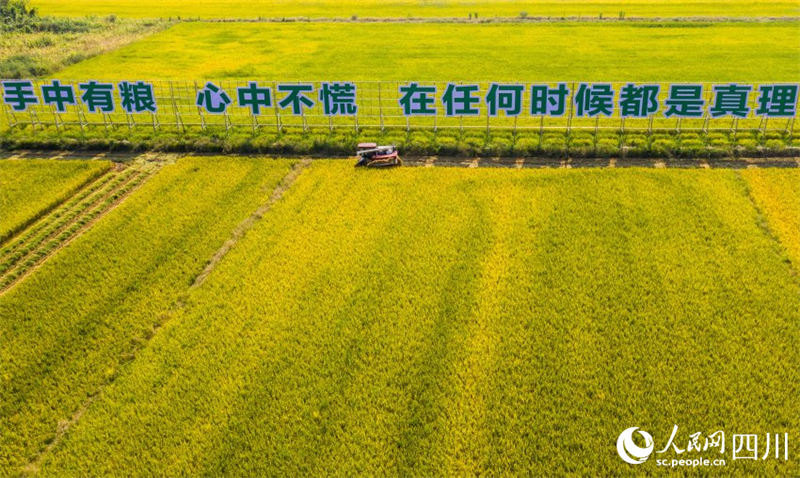 В городе Пэншань провинции Сычуань спешат собрать урожай риса