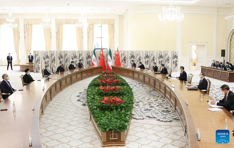Самарканд /Узбекистан/, 16 сентября /Синьхуа/ -- Председатель КНР Си Цзиньпин провел встречу с президентом Ирана Эбрахимом Раиси здесь в пятницу в первой половине дня по местному времени.