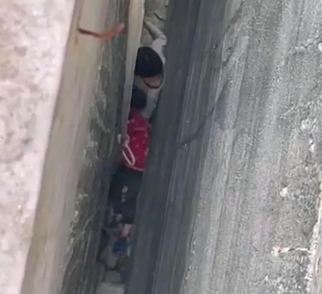 Когда спасатели прибыли на место происшествия, они обнаружили, что ребенок застрял в расщелине стены шириной всего 30 сантиметров и не мог двигаться.