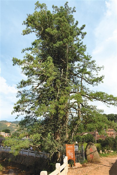 На фото представлен глиптостробус повислый семейства кипарисовых из деревни Личжуан уезда Юнфу /город Чжанпин, провинция Фуцзянь, Южный Китай/. Древнее дерево возвышается до самых небес и пользуется репутацией ?лучшей водяной сосны в мире?. (Фото: www.fujiansannong.com)
