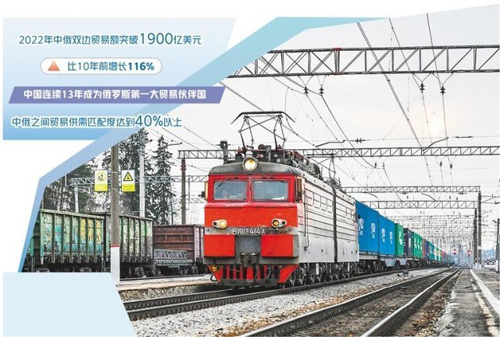 В последние несколько лет Китай и Россия постоянно расширяют объем двусторонней торговли, сформирована модель всестороннего и многоуровневого сотрудничества. Согласно данным, в прошлом году китайско-российский товарооборот превысил 190 млрд американских долларов, что на 116% больше по сравнению с показателем 10 лет назад. Китай уже 13 лет подряд является крупнейшим торговым партнером России. Импульс сотрудничества двух стран в различных областях, как энергетика, аэрокосмическая промышленность, технологические инновации и трансграничная электронная коммерция являются постоянным источником для двустороннего развития.