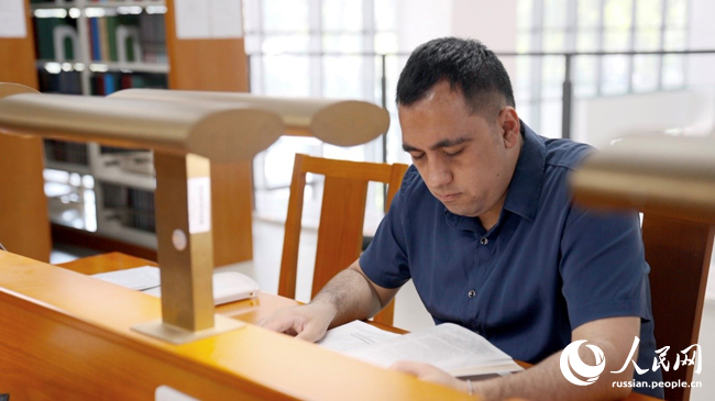 Рахман учится в аудитории для самообучения. Фото: Чжан Вэньцзе, сайт ?Жэньминьван?