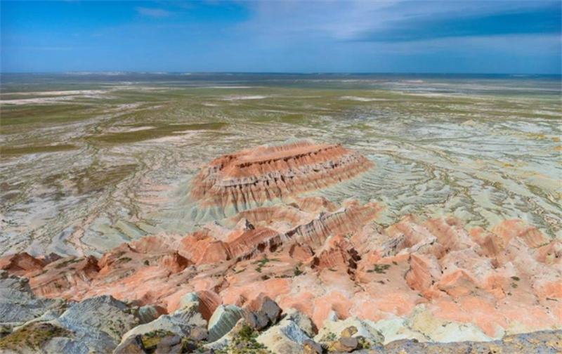 Соленое бессточное озеро Кобейтуз. Акмолинская область, Казахстан.