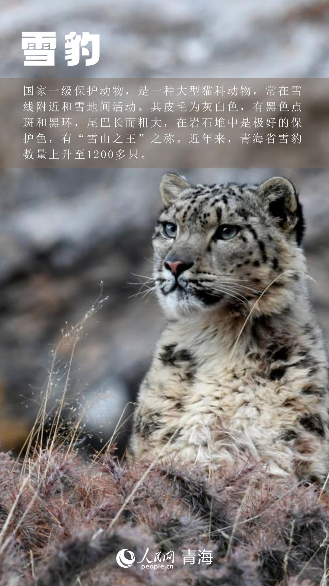 Снежный барс является животным, находящимся под защитой государства первой категории, его называют ?королем снежных гор?. В последние несколько лет количество снежных барсов в провинции Цинхай выросло до более 1200 особей.