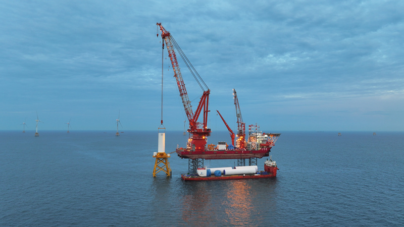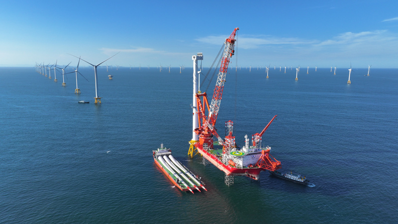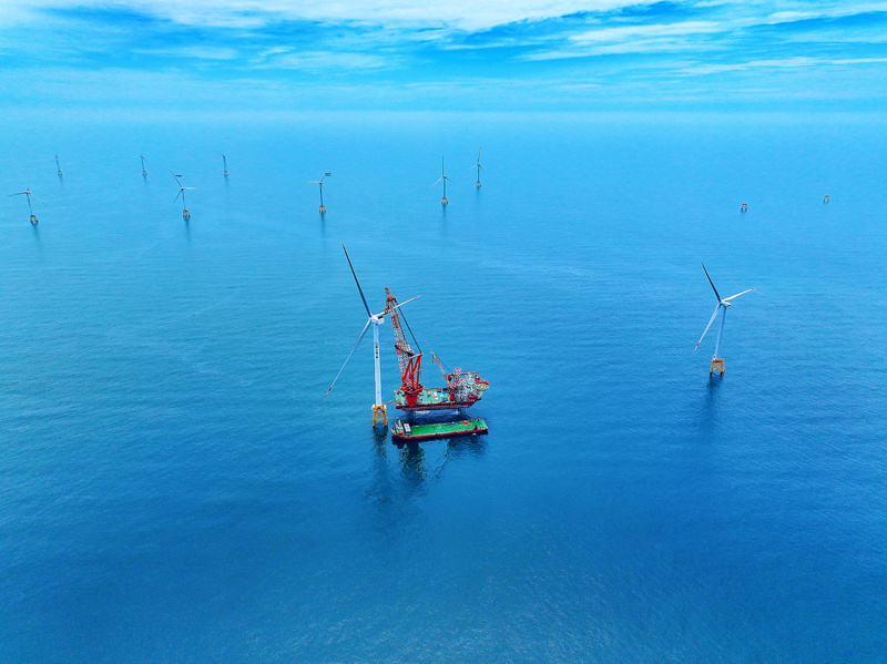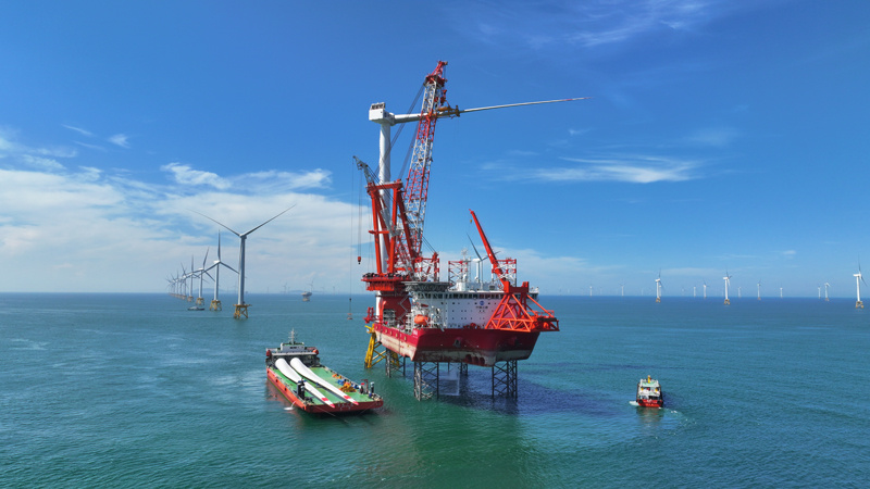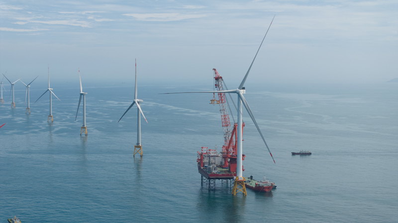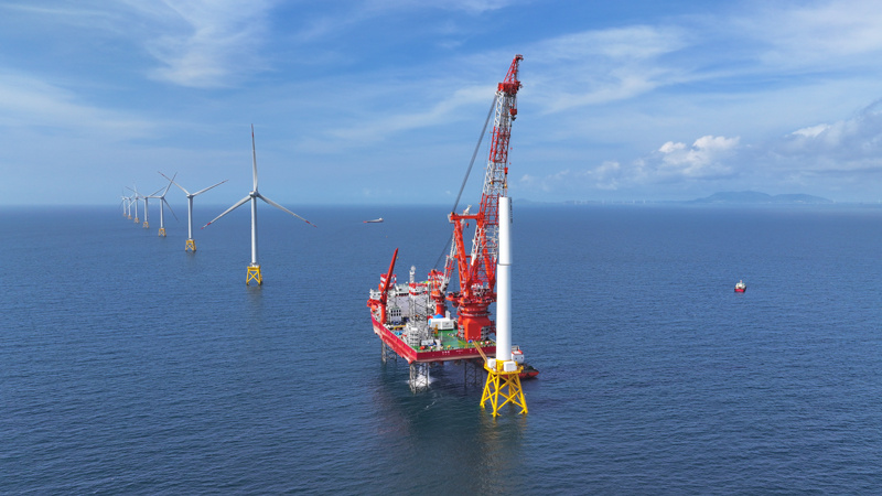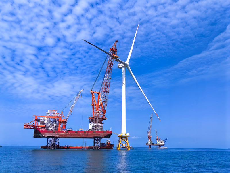 29 июня, ?Жэньминь жибао? онлайн --? 28 июня в северной морской акватории провинции Фуцзянь успешно завершилась сборка первой в мире ветроэлектрической установки мощностью 16 МВт, которая была самостоятельно разработана Китаем. Стоит отметить, что высота ступицы ветряной турбины достигает 152 метра, что соответствует размеру 50-этажного здания, она оснащена лопастями, длина каждой составляет 123 метра, а площадь, на которой они будут вращаться, эквивалентна семи футбольным полям. При полной скорости ветра один оборот позволит обеспечить энергией семью из трех человек в течение недели. Один энергоблок может сэкономить до 22 тысяч тонн стандартного угля и сократить выбросы углекислого газа примерно на 54 тысячи тонн.