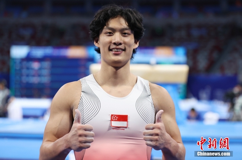 1 августа стартовали соревнования по спортивной гимнастике, состоялись финал мужского многоборья по спортивной гимнастике и отборочные соревнования в индивидуальном многоборье. В этом году 22-летний сингапурец Лю Цзюньи – единственный мужчина-гимнаст в сборной Сингапура. Он впервые приехал в Китай для участия в соревнованиях.