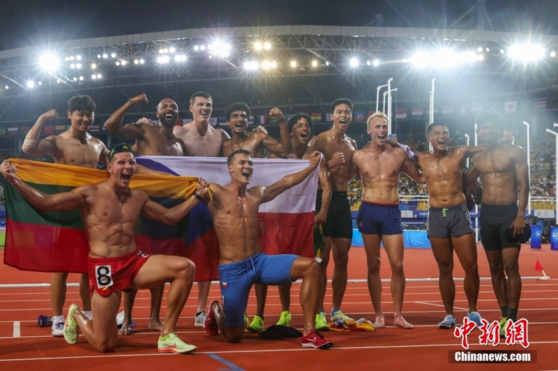 3 августа завершились все соревнования по десятиборью среди мужчин. Золотую награду завоевал чешский спортсмен Вилем Страски. На фото – легкоатлеты после финала соревнований.