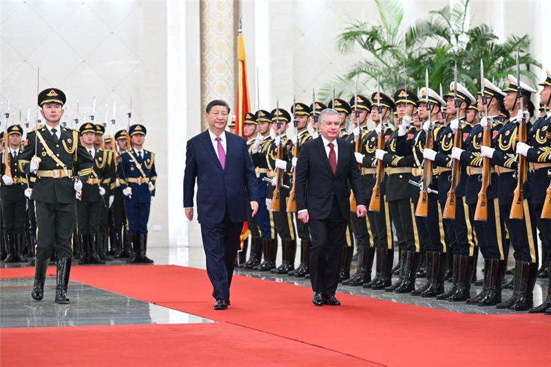 Си Цзиньпин и его супруга Пэн Лиюань устроили для Ш. Мирзиёева и первой леди Узбекистана Зироатхон Мирзиёевой приветственную церемонию в Доме народных собраний перед началом переговоров и приветственный банкет после их завершения в среду вечером.