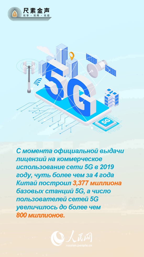 20 марта, ?Жэньминь жибао? онлайн -- Согласно ?Докладу о работе правительства КНР?, уровень проникновения сетей пятого поколения превысил 50%. С момента официальной выдачи лицензий на коммерческое использование сети 5G в 2019 году, чуть более чем за четыре года Китай построил 3,377 миллиона базовых станций 5G, а число пользователей сетей 5G увеличилось до более чем 800 миллионов.
