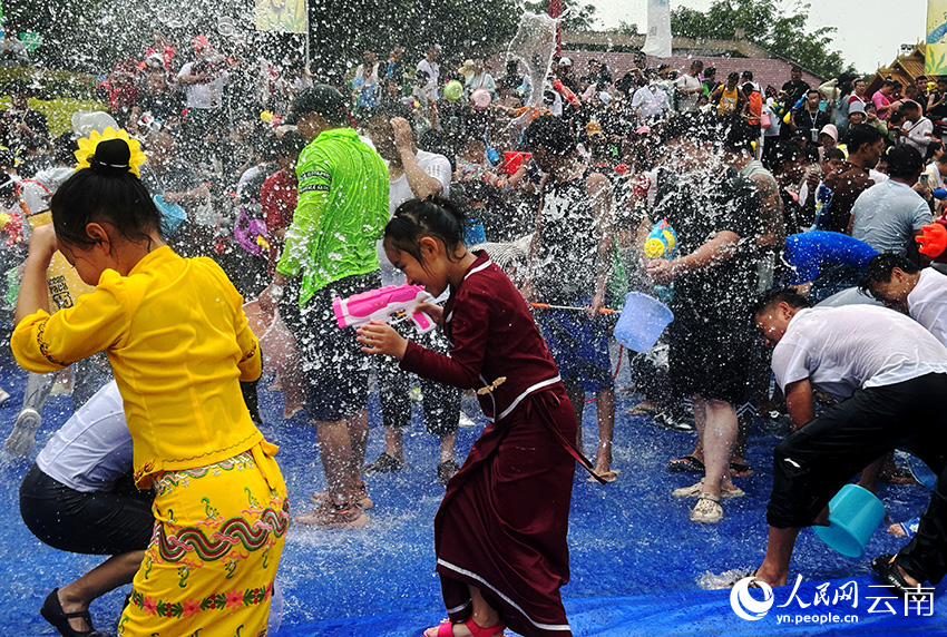 16 апреля, ?Жэньминь жибао? онлайн --? 12 апреля на площади в городе Манши Дэхун-Дай-Качинского АО в провинции Юньнань десятки тысячи людей разных этнических групп, одетые в праздничные костюмы, купались в воде, чтобы отметить Фестиваль водных брызг. Фестиваль водных брызг — крупнейший традиционный праздник года для представителей национальных меньшинств дай, дэан и других. Этот день также считается Новым годом для народности дай. В 2006 году он был включен в первый список объектов нематериального культурного наследия государственного значения Китая. Во время Фестиваля водных брызг, который пройдет с 11 по 15 апреля, в городах Манши и Жуйли префектуры в Дэхун-Дай-Качинском автономном округе также пройдут ряд мероприятий, таких как фестивали еды, представления нематериального культурного наследия и национальных костюмов, а также соревнования по сепактакрау между Китаем и Мьянмой.
