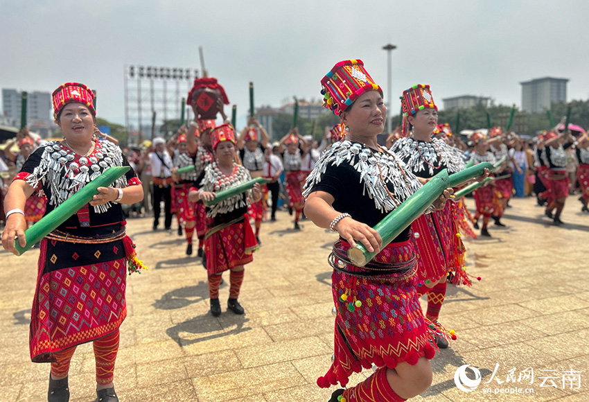 В городе Манши провинции Юньнань тысячи людей отмечают Фестиваль водных брызг