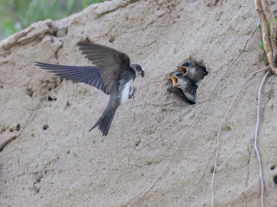 Береговые ласточки кормят птенцов. Фото: Гао Сунмао |
