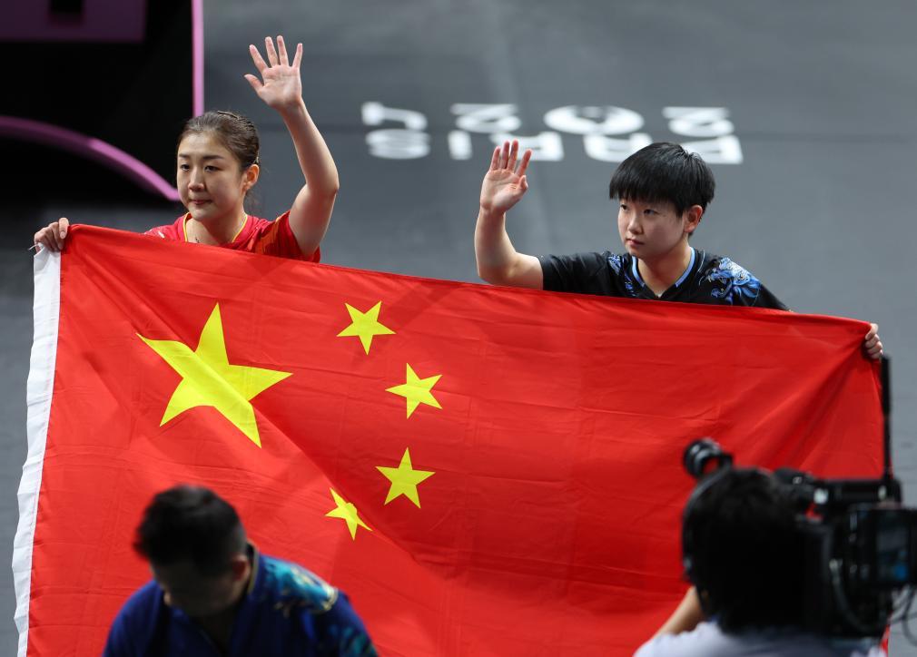 - 5Китайская пара Ван Чуцинь/Сунь Инша завоевала олимпийское золото в соревнованиях по настольному тен…