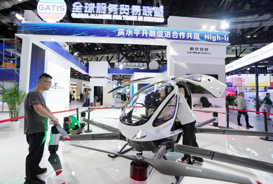 На проходящей Китайской международной ярмарке торговли услугами /CIFTIS/ 2024 года посетителей привлекают передовые приложения в области логистики и доставки, такие как беспилотники и интеллектуальные складские модули.