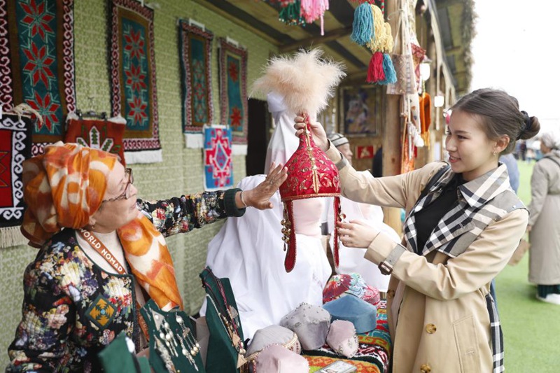 9 сентября, Астана. Выставка-ярмарка изделий лучших мастеров-ремесленников Казахстана на V Всемирных играх кочевников в этноауле. /Фото: Синьхуа/ |