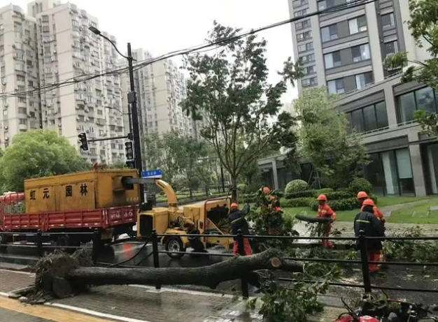 Тайфун, максимальная скорость ветра вблизи центра которого составила 42 м/с, вышел на сушу в прибрежной зоне Линьган района Пудун.