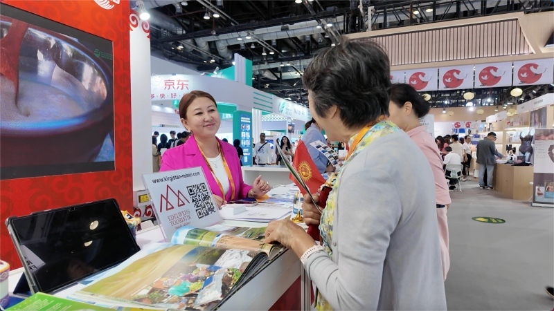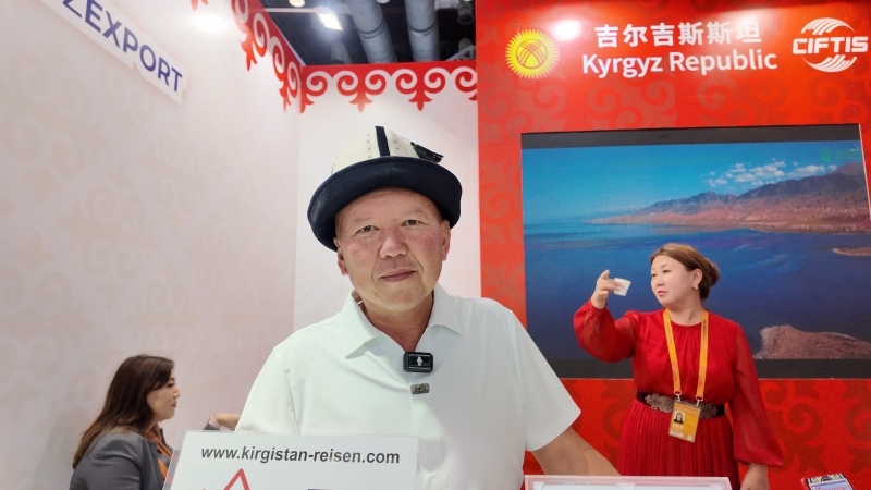 Продвижение туризма – это тоже важное направление Национального павильона Кыргызстана. Генеральный директор туристической компании Кыргызстана Edelweiss Touristik Талант Аземов отметил, что его компания впервые принимает участие в ярмарке. Он пригласил китайских туристов в Кыргызстан, чтобы они могли увидеть и почувствовать красивые природные ландшафты, уникальные обычаи и традиции страны.
