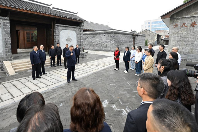 В четверг днем Си Цзиньпин проинспектировал город Тунчэн, где посетил переулок Лючисян, историческое и культурное место, известное из истории времен династии Цин /1644-1911 гг./. Это история о чиновнике и его соседе, которые отодвинули свои стены на метр, чтобы разрешить спор о границах собственности, является примером добрососедской вежливости и гармонии.