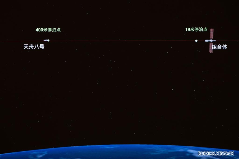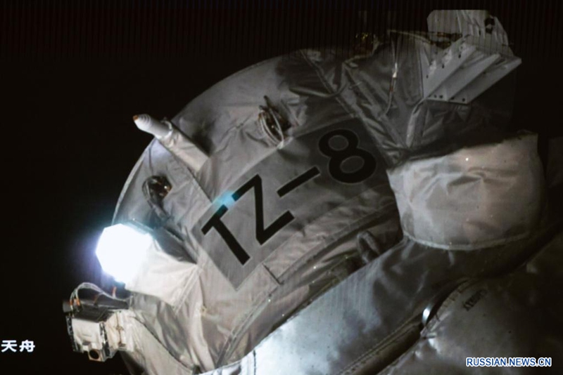По данным ведомства, в 02:32 по пекинскому времени "Тяньчжоу-8" произвел стыковку с задним стыковочным узлом основного модуля "Тяньхэ" после завершения коррекции своего положения.