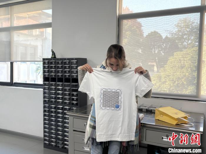 Саша, будучи архитектурным дизайнером, также попыталась разработать свой дизайн футболки. С помощью мини-программы Генного банка Цзиндэчжэня Саша выбрала узор и разместила его на футболке. Через 20 минут этот уникальный принт появился на белой футболке.