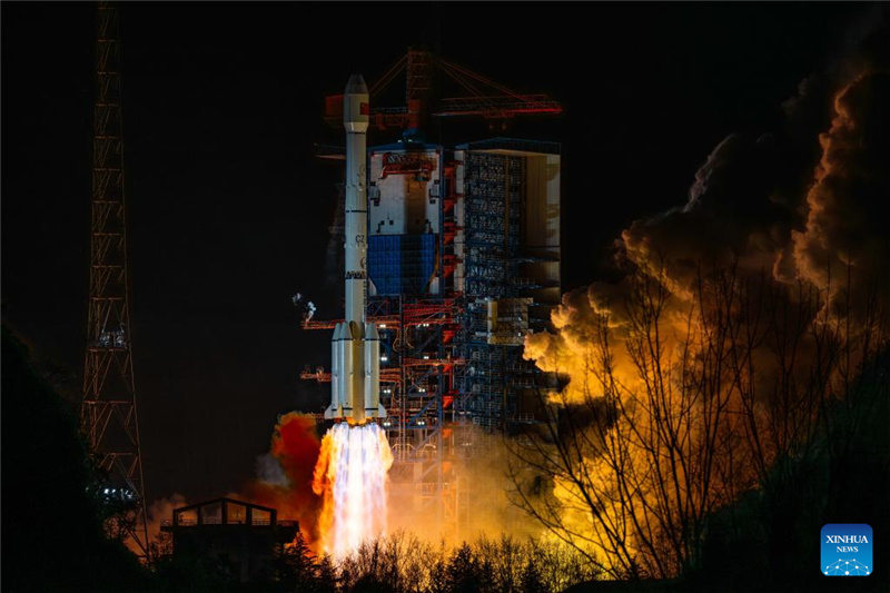 Запуск, в результате которого спутник достиг заданной орбиты, был произведен в 4:00 утра по пекинскому времени с космодрома Сичан /пров. Сычуань, Юго-Западный Китай/.
