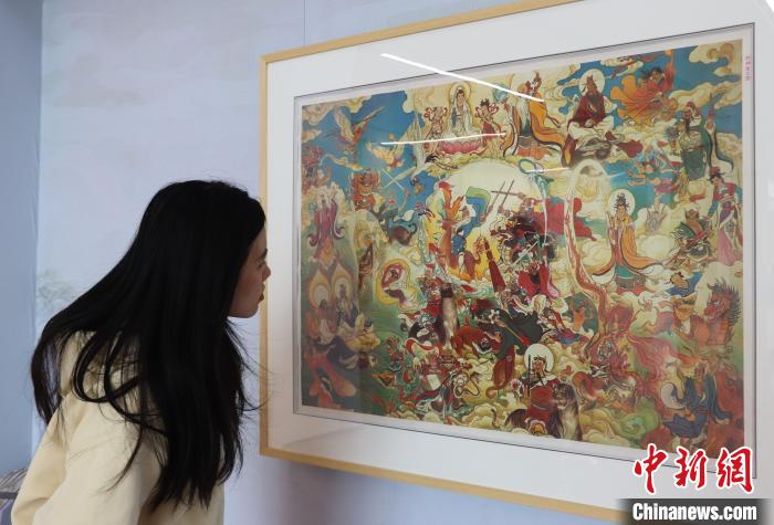 Посетительница рассматривает картину ?Возвышение в ранг духов?, иллюстрацию к одноименному роману 16 века. |