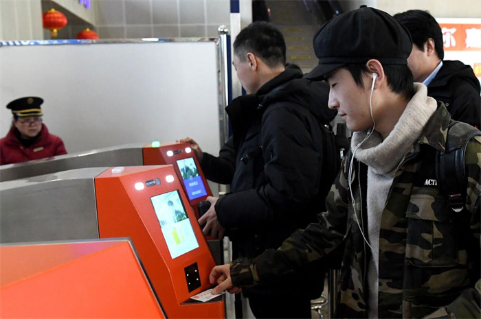 21 января 2019 года пассажиры заходят на станцию вокзала, ?просканировав лицо?. Фото: Ли Ань |