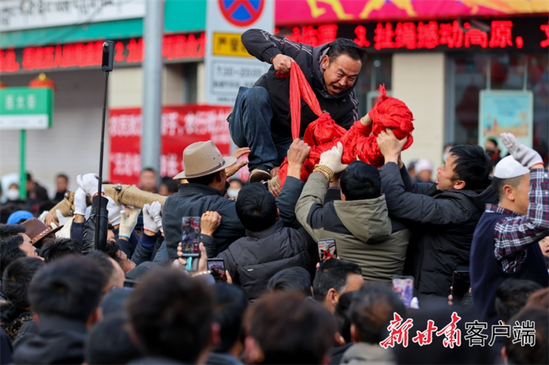 13 февраля, ?Жэньминь жибао? онлайн -- В уезде Линьтань Ганьнань-Тибетского автономного округа провинции Ганьсу /Северо-Западный Китай/ каждый год с 14 по 16 число первого месяца по лунному календарю проходит масштабное мероприятие по перетягиванию каната. Десятки тысяч человек соревнуются по обе стороны стального троса длиной более 1800 метров и весом около 16 тонн.