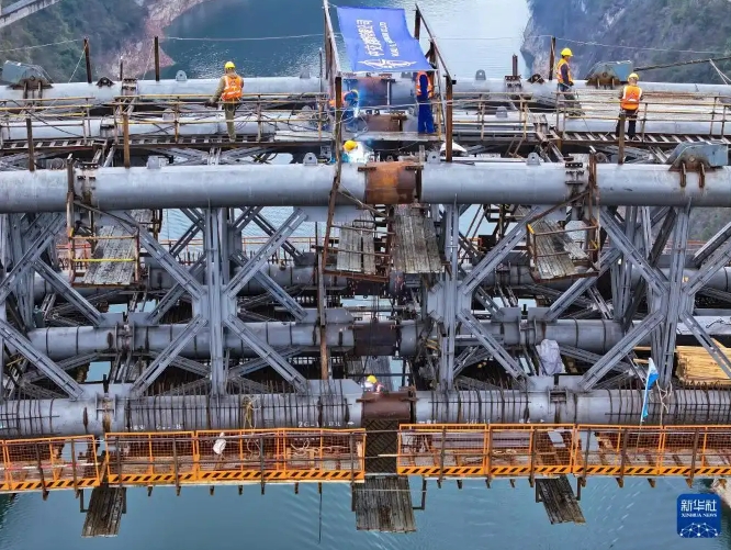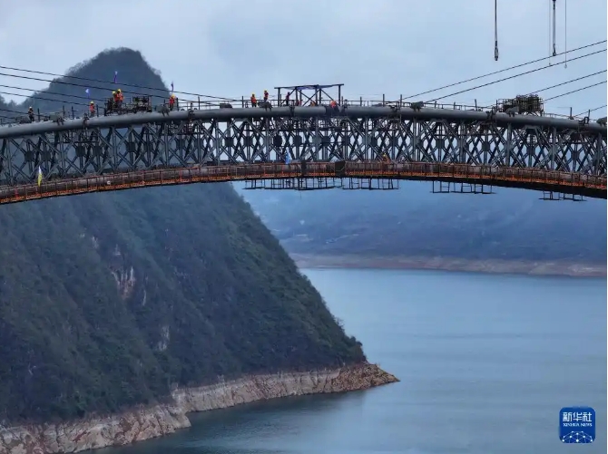 6 марта, ?Жэньминь жибао? онлайн -- 5 марта была осуществлена смычка большого моста Уцзян – на железной дороге Вэньма, которая тянется с севера на юг, в провинции Гуйчжоу. Протяженность этого моста составляет около 520 метров, главный пролет – 337 метров, высота от настила моста до поверхности реки достигает 200 метров.
