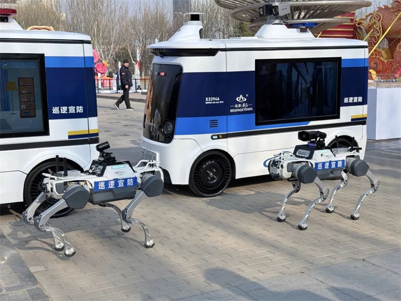 11 марта, ?Жэньминь жибао? онлайн -- 8 марта в зоне технико-экономического развития Пекина начались работы по патрулированию улиц с участием роботов-собак и беспилотных автомобилей. Эти инновационные технологии стали частью проекта по внедрению системы умной патрульной службы нового поколения. Она объединяет алгоритмы искусственного интеллекта и анализ больших данных, обеспечивая безопасность и комфорт на улицах города. В состав патрульной группы входят 18 беспилотных автомобилей с 4-м уровнем автономности, 15 управляемых патрульных автомобилей и два робота-собаки.