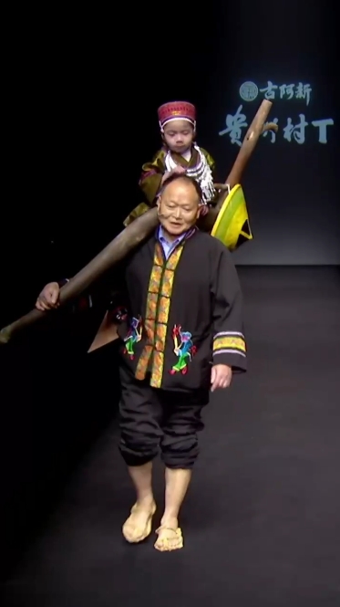 На модном шоу этого сезона дедушка из Гуйчжоу вышел на подиум вместе со своей внучкой. У Гуанлэй, главный операционный директор Деревенских показов мод Гуйчжоу, рассказал, что в поселениях национальных меньшинств в Гуйчжоу старейшины ежедневно носят детей на спине вместе с плетеными корзинами и коромыслами.