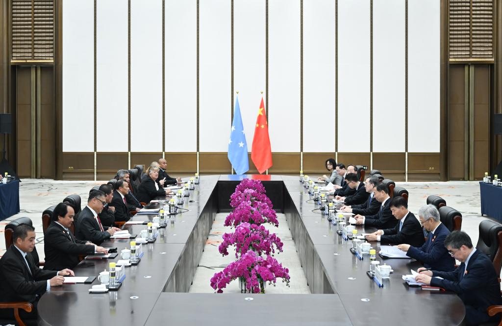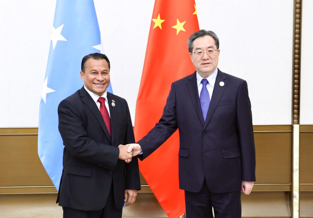 На встрече с вице-президентом Федеративных Штатов Микронезии /ФШМ/ Ареном Паликом Дин Сюэсян призвал обе стороны расширить сотрудничество в области торговли, инвестиций, инфраструктуры и морской экономики, а также совместно реагировать на изменения климата.