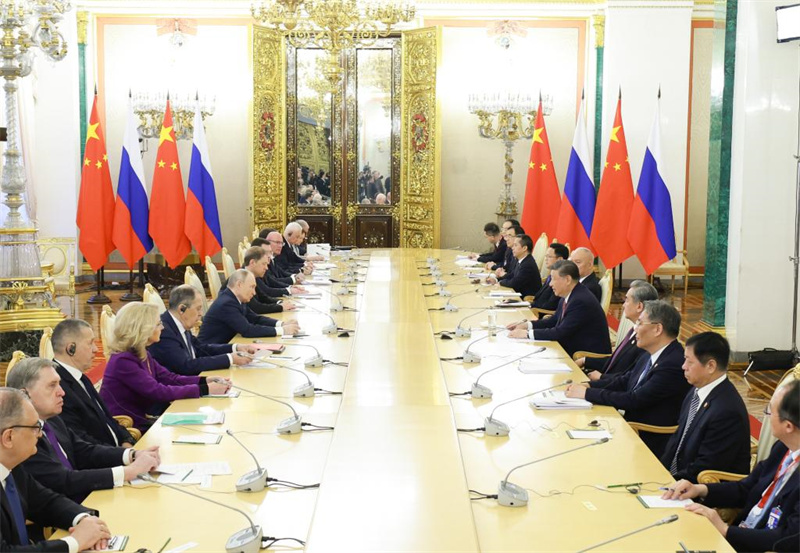 Си Цзиньпин сделал соответствующее заявление во время переговоров с президентом РФ Владимиром Путиным в ходе своего государственного визита в Россию. Лидеры двух стран провели углубленный обмен мнениями о китайско-российских отношениях и значимых международных и региональных проблемах. Они договорились неуклонно углублять стратегическое взаимодействие и способствовать стабильному, здоровому и высокоуровневому развитию китайско-российских отношений. Лидеры также призвали содействовать распространению правильного взгляда на историю Второй мировой войны, защищать авторитет и статус Организации Объединенных Наций, отстаивать международную честность и справедливость.