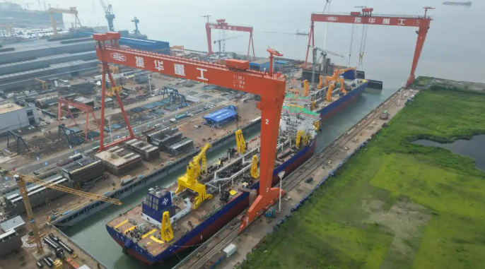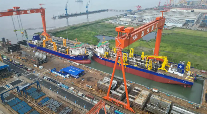 Сообщается, что одновременный спуск на воду двух земснарядов с волочащимся грунтоприемником свидетельствует о достижении Китаем лидирующей позиции в мире по производству крупногабаритного оборудования для дноуглубительных работ.